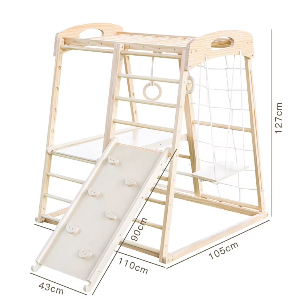 ¿Te imaginas tener un mini parque en casa? Con este centro de escalada de madera, los niños podrán moverse, trepar, columpiarse y jugar como si estuvieran en una plaza, pero con toda la seguridad del hogar.