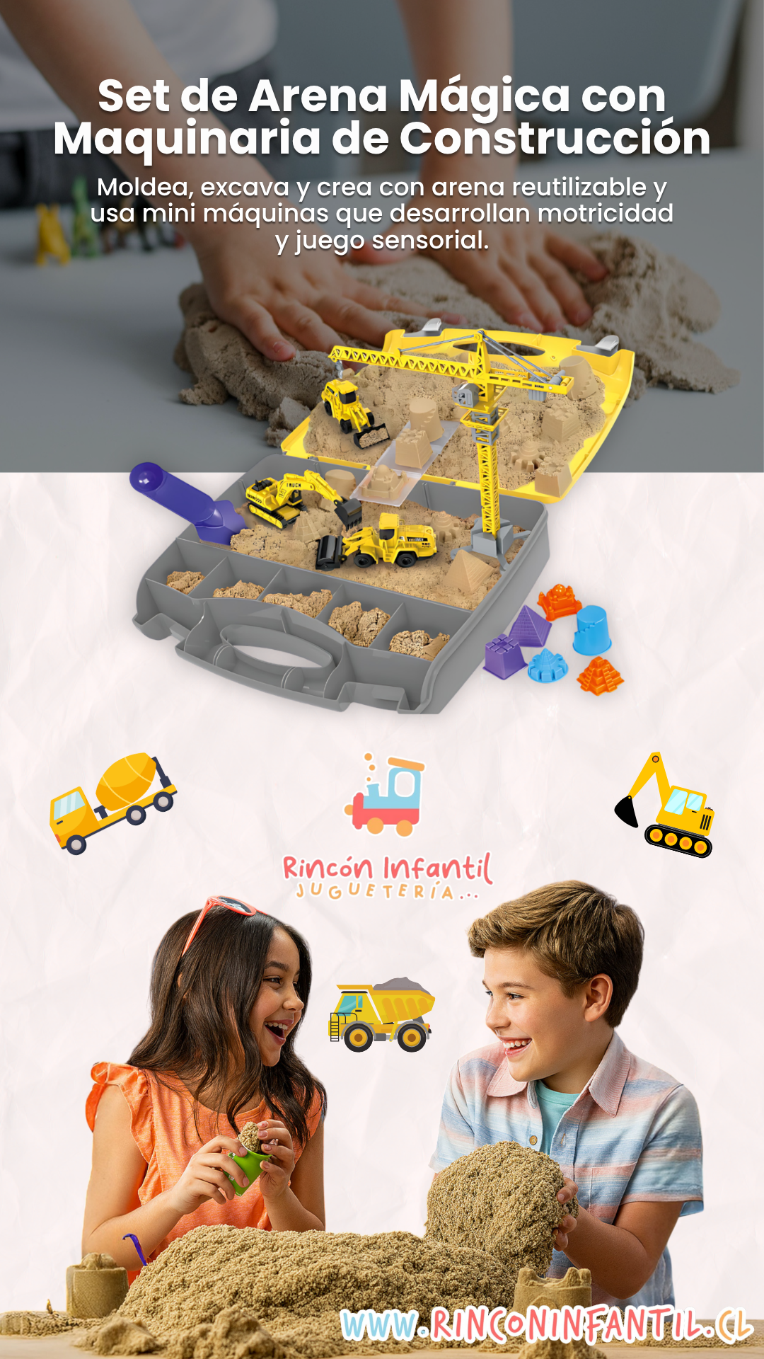| Incluye | 750g de arena mágica, mini máquinas de construcción, moldes y herramientas |